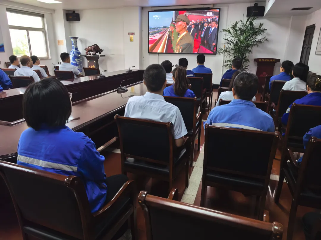 9月3日是中国人民抗日战争暨世界反法西斯战争胜利80周年纪念日。普阳钢铁集团组织各厂各部各单位集中观看阅兵式,感受祖国军事力量的强大,并将这种精神转化为降本增效的实际行动,用自身因素降成本的亮眼成绩向抗战胜利致敬!